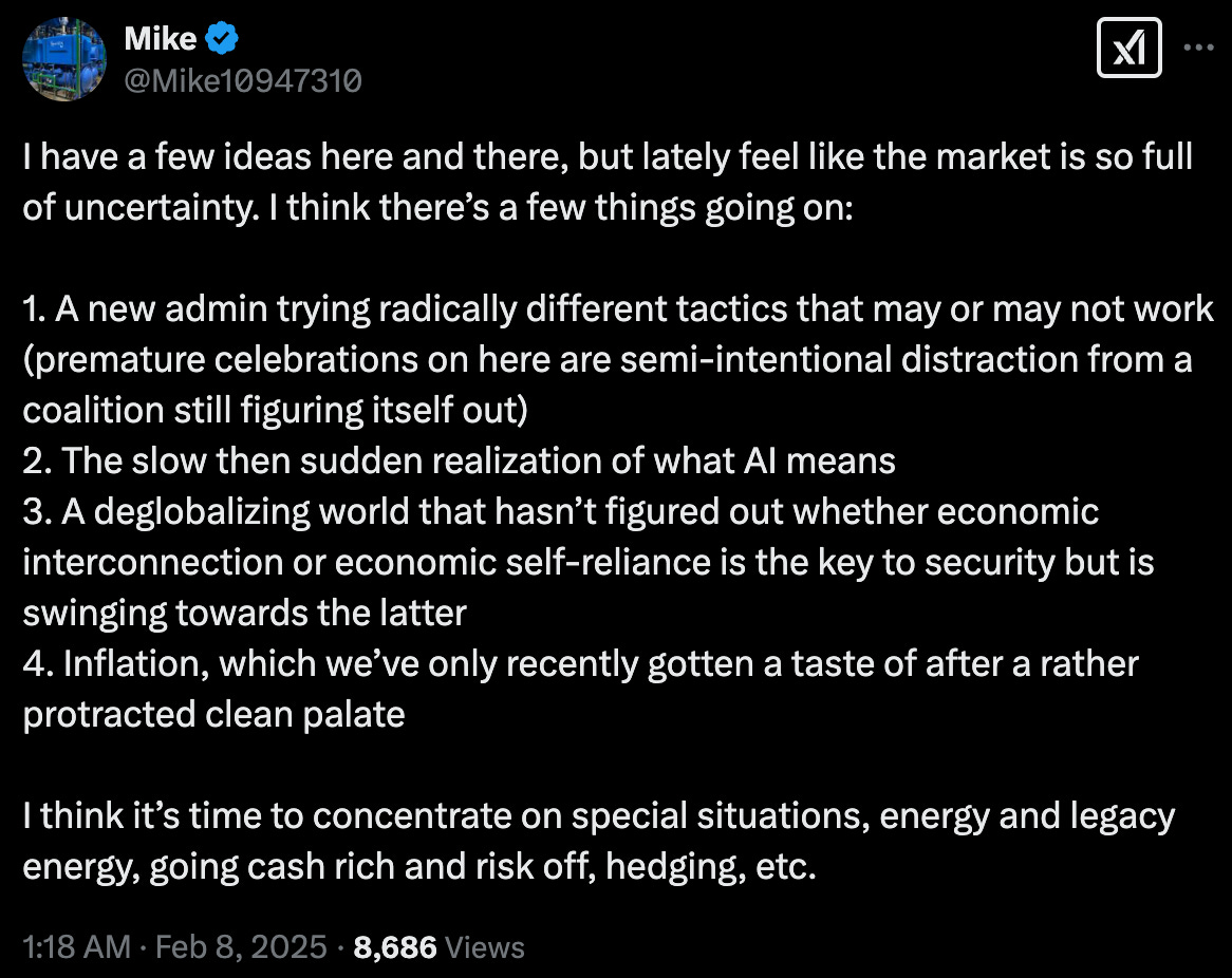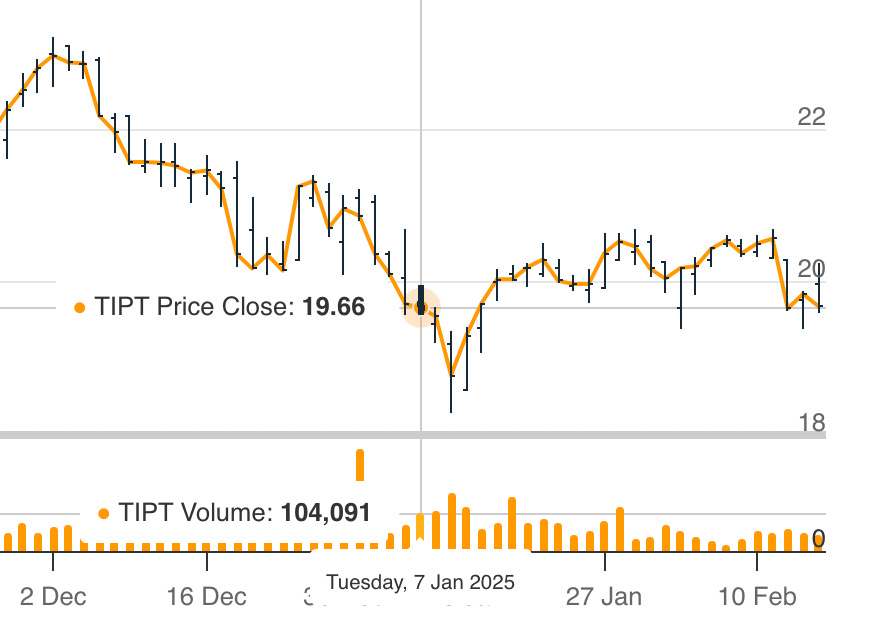 The below tweet sums up much of how I feel about the market right now. And to that end, it’s well worth looking more into special situations. Surprisingly, TIPT 0.00%↑ is a completely unfollowed name that may well officially announce a transformative sale process on its upcoming earnings call (estimated by Nasdaq to be after market on 2/26/2025, but unclear). In fact, it apparently has begun this sale process already, as I will explore.