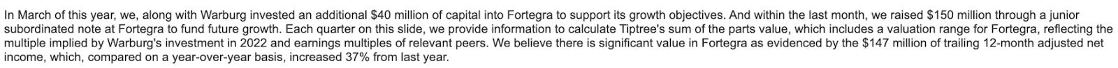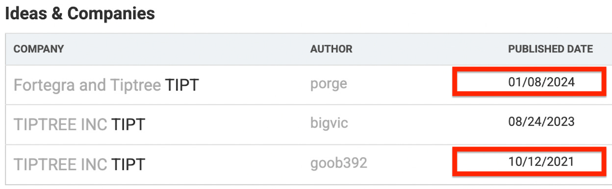 It is unlikely that anyone not already familiar with the name would realize this is essentially a public company selling itself (given that Tiptree again is essentially just Fortegra).Additionally, I have confirmed this story does not appear on either Bloomberg or CapIQ on Tiptree’s page, further supporting the idea that it’s been missed.